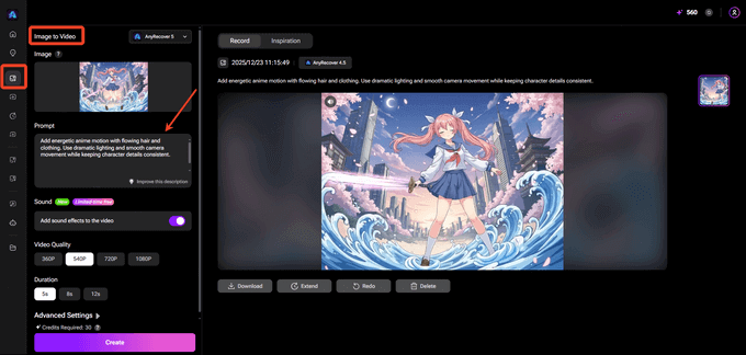 Hvis du ikke har et billede, lader Anycreate dig generere enanime karakterhelt fra tekst.