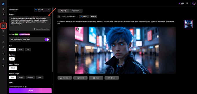 Du beskriver karakterens udseende, stil, miljø og bevægelse. Anycreate forvandler din beskrivelse til en fuldt animeret anime-video.
