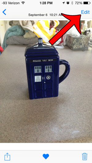 Dette er en nyttig mulighed, når du vil have et billede udskrevet som et 5×7-billede, en firkant eller et af de andre tilgængelige forhold. Så fortsæt med at læse nedenfor for at finde ud af, hvordan du kan redigere dine iPhone-billeder på denne måde.