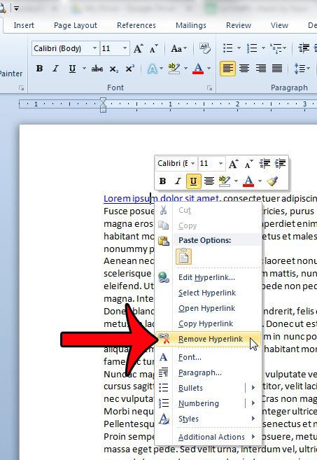 Fjernelse af et hyperlink i Microsoft Word 2010 (vejledning med billeder)