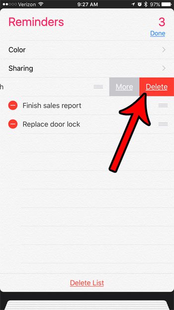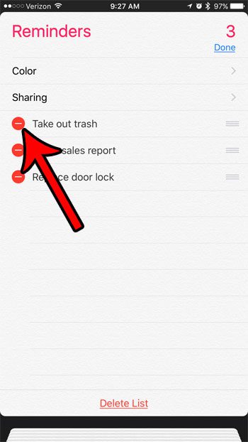 Trin 3: Tryk på den rødeSletknappen for at fjerne påmindelsen fra listen.
