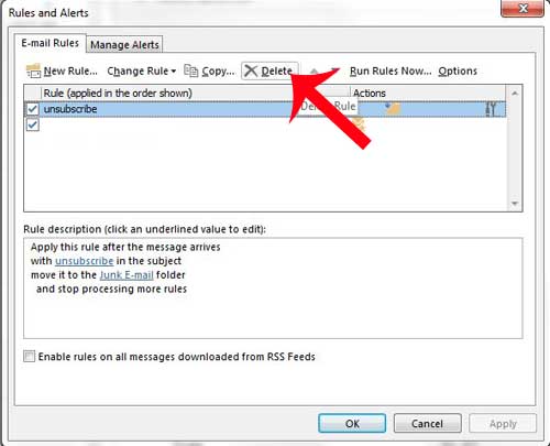 Heldigvis giver Outlook 2013 dig også muligheden for at slette regler, du har oprettet, og fjerne de filtre, der flytter bestemte meddelelser.