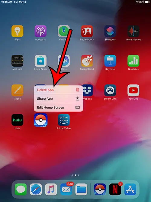 Vores artikel fortsætter nedenfor med yderligere oplysninger om sletning af apps fra en iPad, inklusive billeder af disse trin.