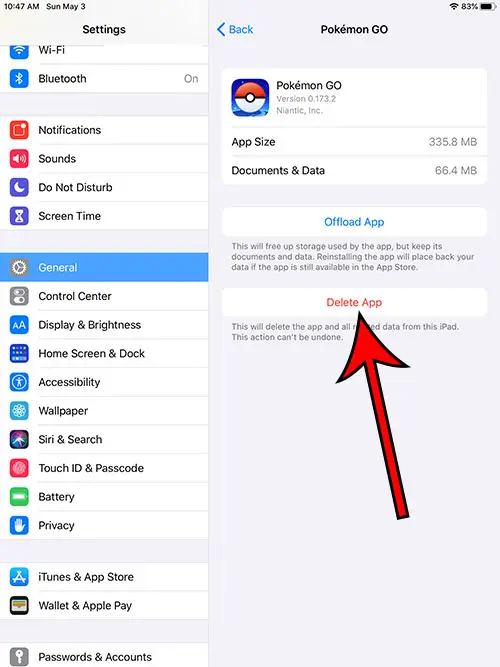 Trin 3: Tryk påSletfor at bekræfte, at du ønsker at slette appen.