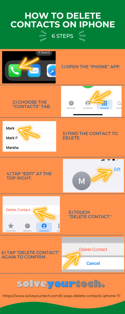 Trin 6: Tryk påSlet kontaktknappen igen for at bekræfte fjernelse af kontakten fra din iPhone.