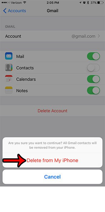 Den sidste metode til, hvordan du sletter kontakter på iPhone nedenfor, er en god mulighed, hvis de kontakter, du skal fjerne, synkroniseres fra en specifik e-mail-konto, som du tidligere har føjet til din iPhone.