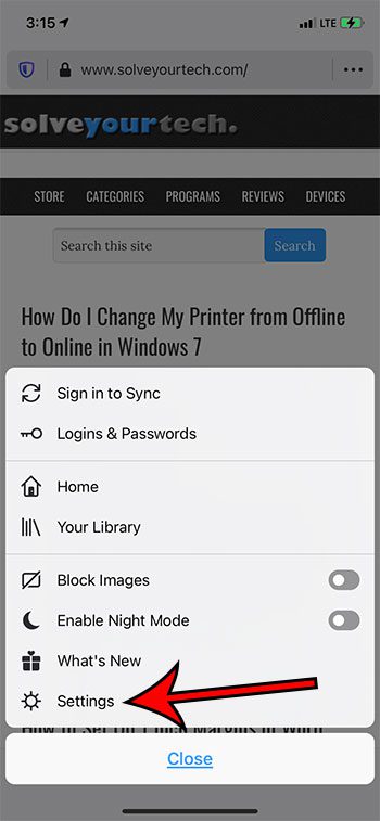 Vores guide fortsætter nedenfor med yderligere oplysninger om vores klare historik Firefox iPhone-metode, inklusive billeder af disse trin.