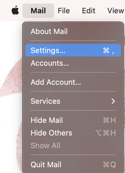 Med dinMail appåbne, naviger til menulinjen øverst på skærmen og klikPost. Vælg derefterIndstillings fra rullemenuen.