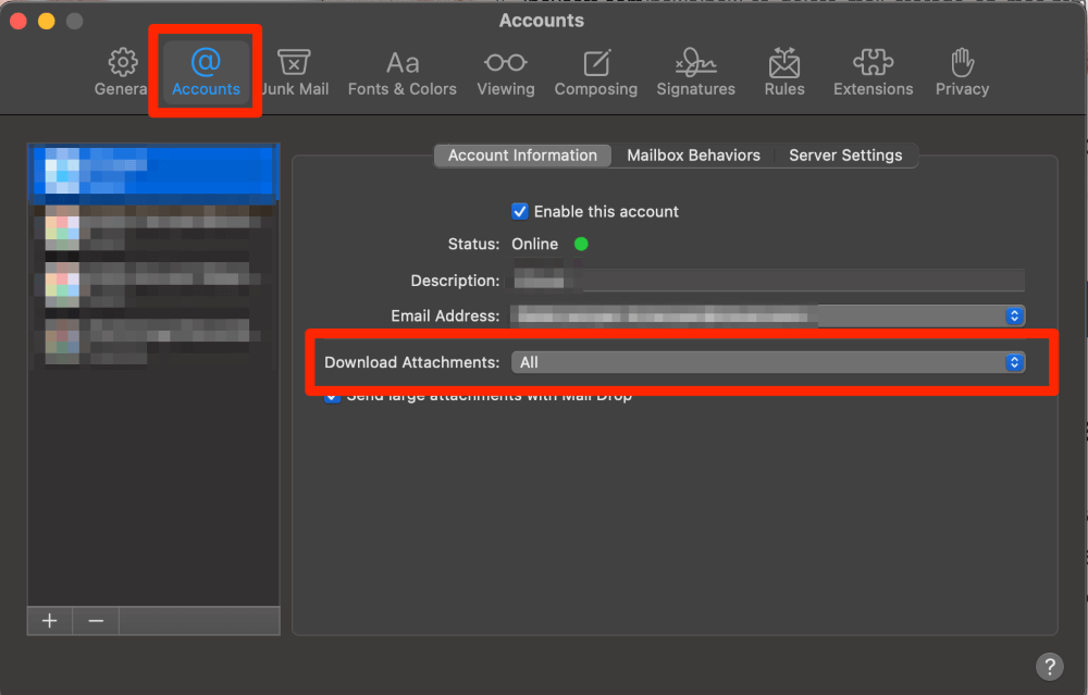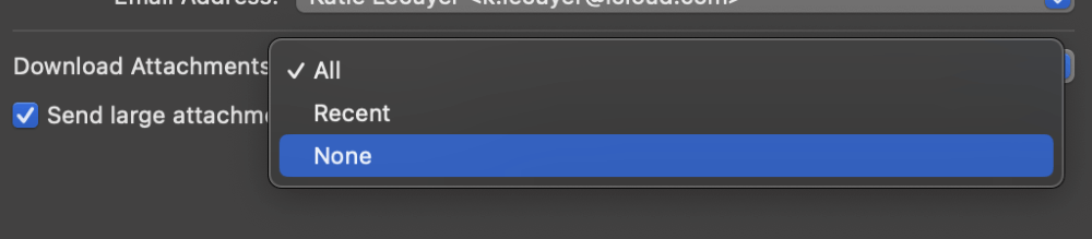 Denne indstilling er nyttig, hvis du gerne vil forhindre din Mac i at downloade de vedhæftede filer i dine e-mails.