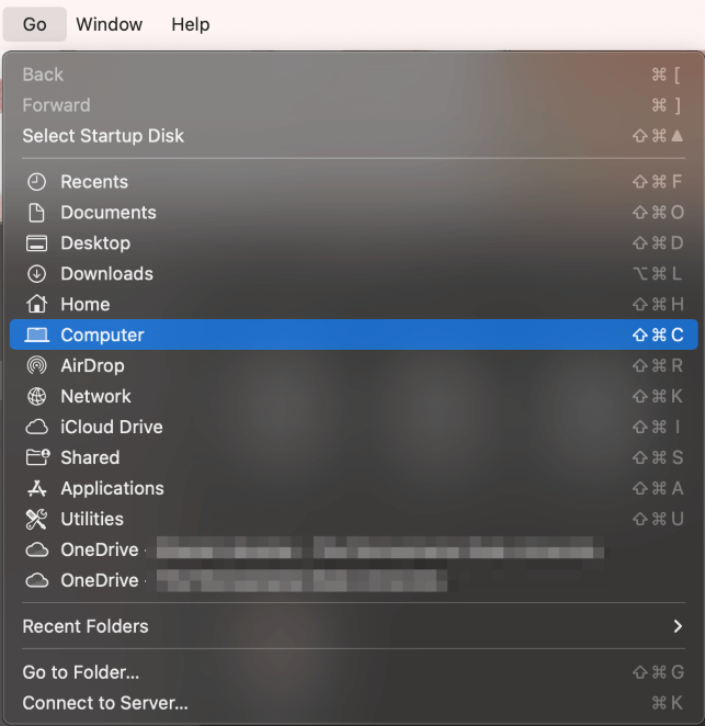 Trin 2: IGåmenuen øverst på skærmen, klikGå til mappe.