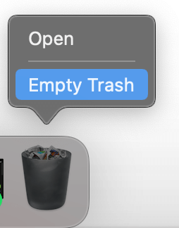 Den nemmeste måde at tømme din papirkurv på er at højreklikke på papirkurv-ikonet (eller klikke med to fingre) og vælgeTøm papirkurven.