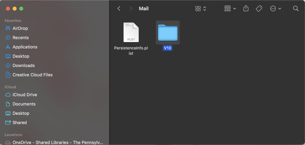 ÅbnPostfolder. I mailmappen vil der være en anden mappe, der er navngivetVog et nummer, mit hed V10.