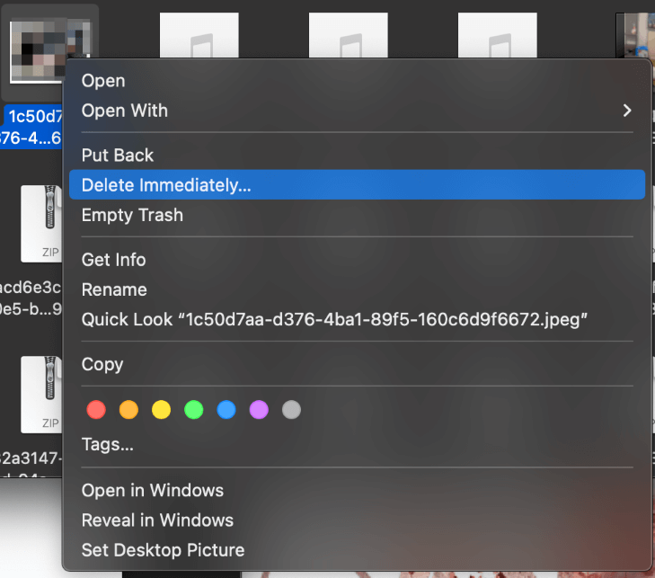 Men flytning af disse filer til papirkurven sletter dem ikke permanent eller rydder din diskplads. For at afslutte sletningen af disse filer skal du også fjerne dem fra papirkurven.