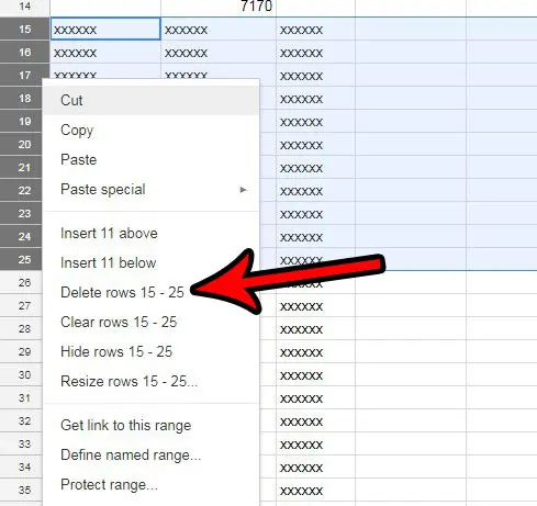Vores artikel fortsætter nedenfor med yderligere oplysninger om sletning af flere rækker i Google Sheets, inklusive billeder af disse trin.