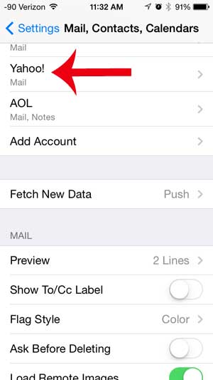 Men du modtager sandsynligvis stadig e-mails til den konto, som du ikke længere ønsker at se på din iPhone. Og hvis du løber ind i problemer med lagerplads på din iPhone, kan sletning af Yahoo-kontoen, som du ikke længere bruger, være en enkel måde at frigøre noget plads på. Så følg vores vejledning nedenfor for at lære, hvordan du sletter den yahoo-konto fra din iPhone.