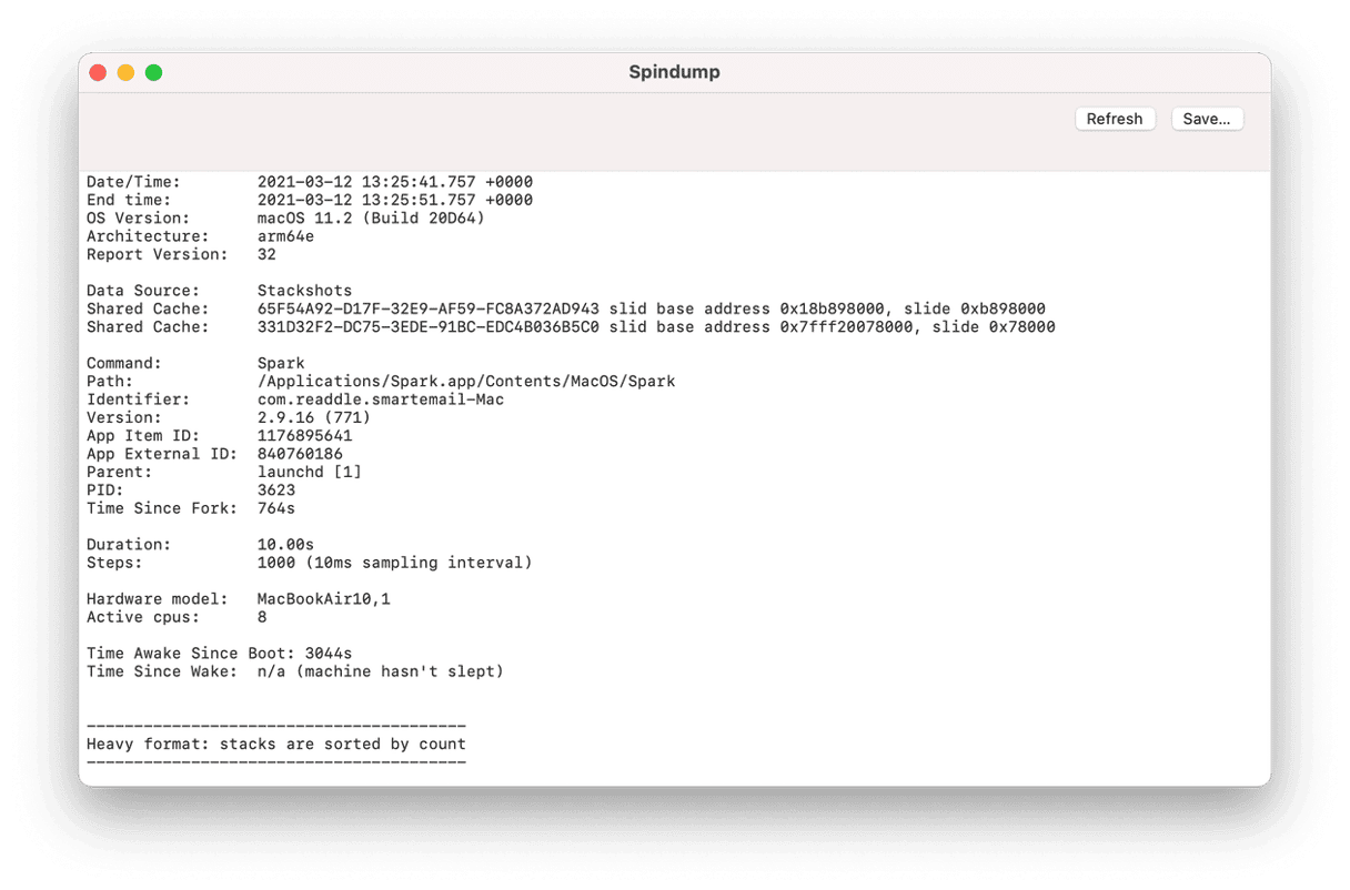 Spindump er et diagnose- og rapporteringsværktøj, der kan kaste lys over, hvorfor en applikation går ned eller ikke reagerer. Selvom det er usandsynligt, at du selv vil finde noget i det, der vil vise sig nyttigt, er det meget nyttigt, når du er i diskussion med en udvikler om problemer, du har med deres app. Sådan bruger du det.