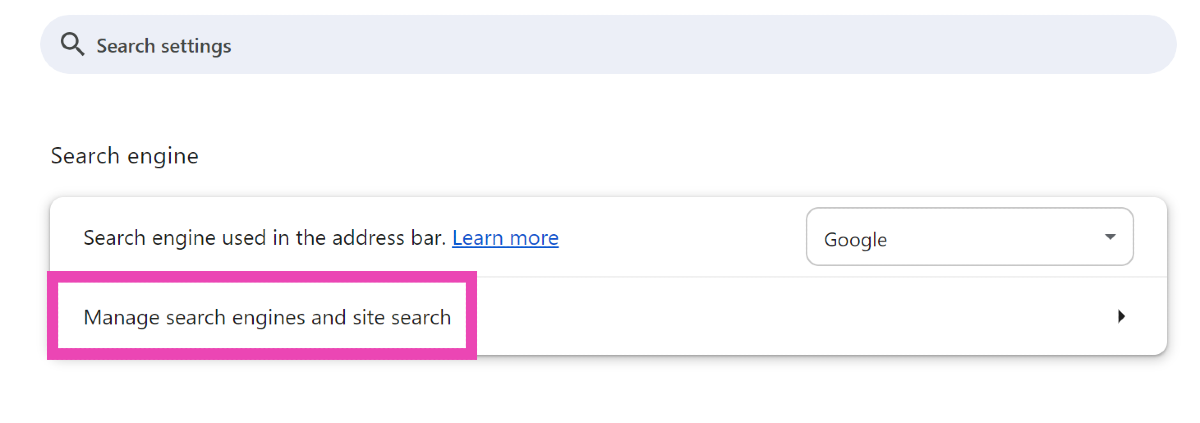 Trin 3:Klik påAdministrer søgemaskiner og webstedssøgning.