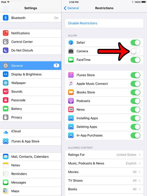 En god måde at håndtere denne situation på er med restriktioner. Du kan bruge denne mulighed til at gøre en masse ting, herunder deaktivere kamera på iPad-enheder.