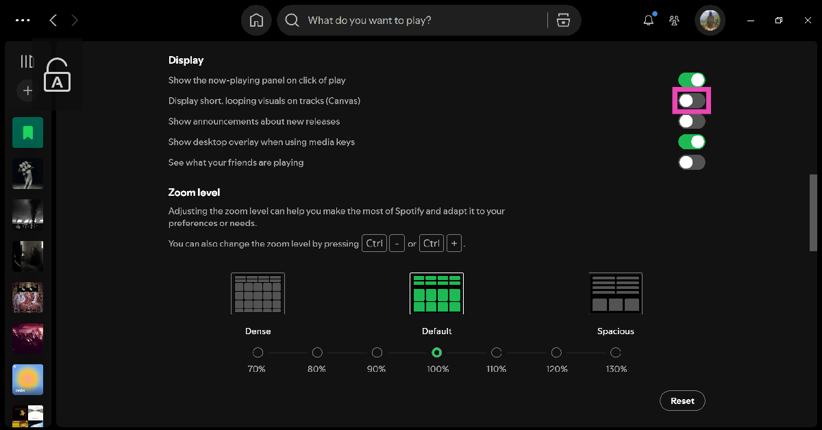 Deaktiver Canvas i Spotify PC-appen