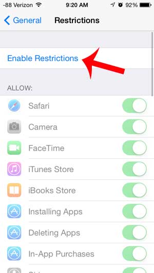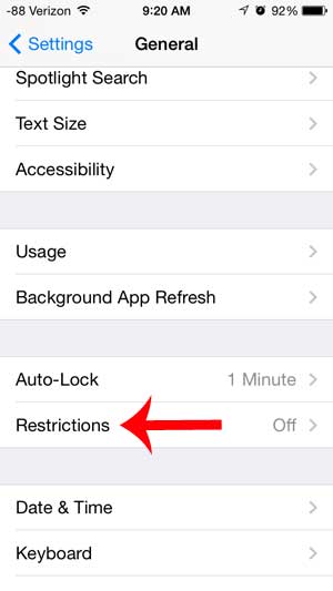 iPhonen har en mulighed, der giver dig mulighed for at gøre dette, og den hedderBegrænsninger. Du kan følge vores guide nedenfor for at lære, hvordan du aktiverer begrænsninger på en iPhone og deaktiverer kameraet på enheden.