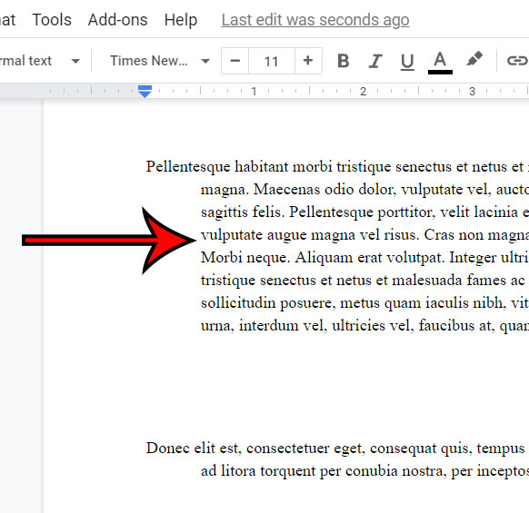 For at fjerne et hængende indrykning i Google Docs skal du først klikke et sted inde i det afsnit, der indeholder det hængende indrykning.