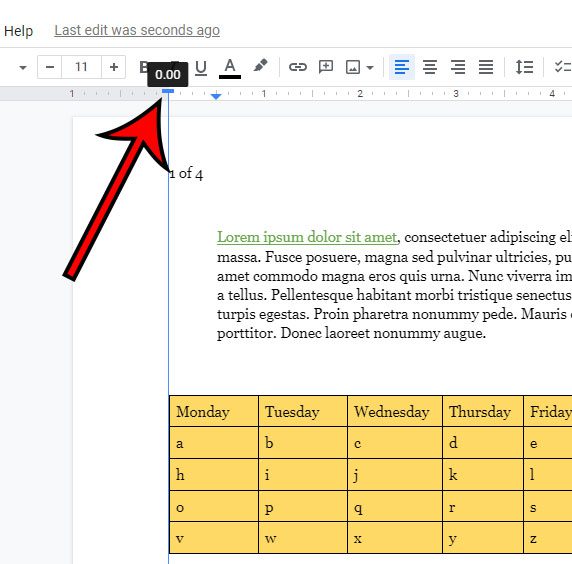 Trin 3: Klik og træk pil ned på linealen til den ønskede indrykningsplacering.
