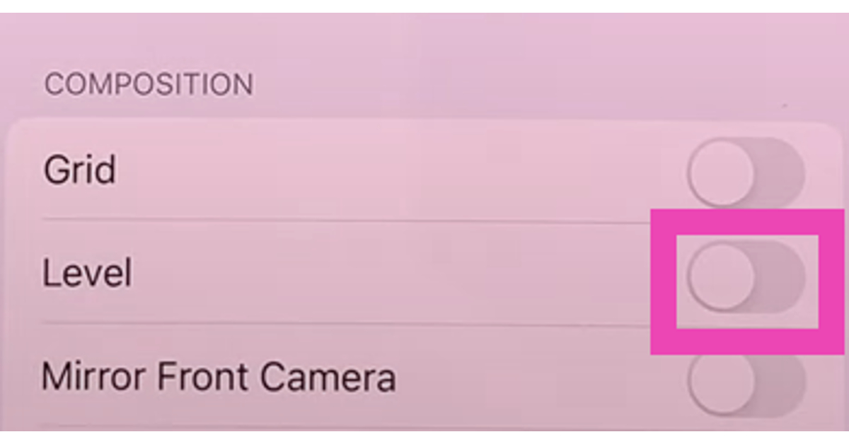 Gå til for at aktivere kameraniveauværktøjet til din iPhones kameraappIndstillinger > Kameraog tænd for skiftestangen for niveau.
