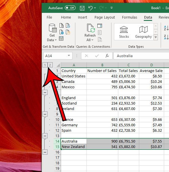 Hvis du har problemer med at finde disse ikoner, er de i øverste venstre hjørne af regnearket. Dette er en af de bedste metoder, når du skal lære at udvide alle rækker i Excel, da gruppering af data i et Excel-regneark har en række forskellige anvendelser.