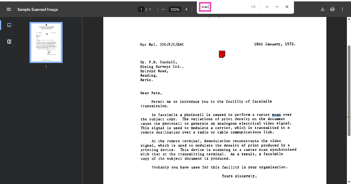Som navnet antyder, oprettes en scannet PDF ved at scanne et fysisk dokument. Et dokument kan scannes og konverteres til en PDF ved at bruge en fysisk scanner eller en mobilapp. I scanningsprocessen behandles teksten i dokumentet ikke. I stedet tager scanningsmaskinen eller appen et billede af siden og konverterer det til PDF-formatet. Dette gør det svært at vælge teksten fra det scannede PDF-dokument.