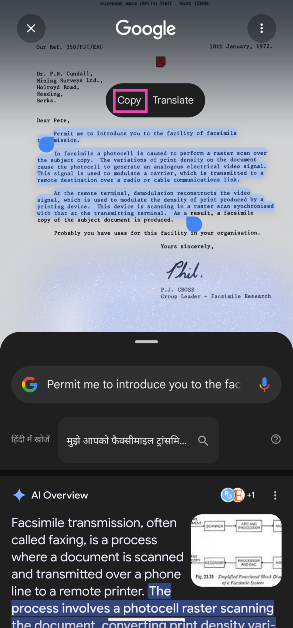 Chrome-browseren til pc lader nu brugere interagere med teksten på scannede PDF-filer. Selvom denne funktion ikke er blevet rullet ud til Chrome på Android, kan brugerne forvente, at den lanceres i de kommende måneder. I mellemtiden kan Android-brugere bruge Google Lens og Circle to Search til at kopiere og oversætte teksten fra en scannet PDF eller billede.