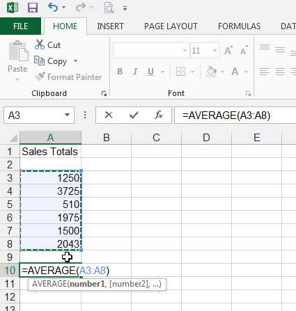 Sådan opretter du manuelt en gennemsnitlig formel i Excel 2013