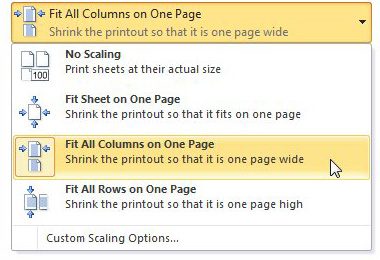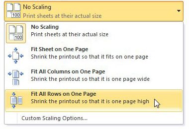 På den anden side af mønten, hvis du bare har et par for mange rækker, men alt for mange kolonner, kan du brugeTilpas alle rækker på én sidemulighed påIngen skaleringrullemenu.