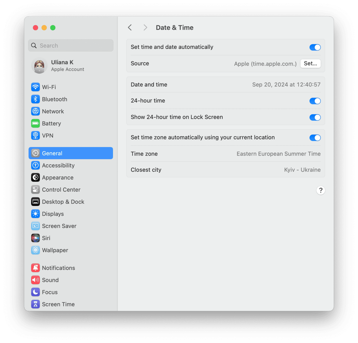- Tjek dato og klokkeslæt, og foretag ændringer, hvis det er nødvendigt. Det er dog bedre at slå indstillingen til, der gør det muligt at indstille tid og dato automatisk.