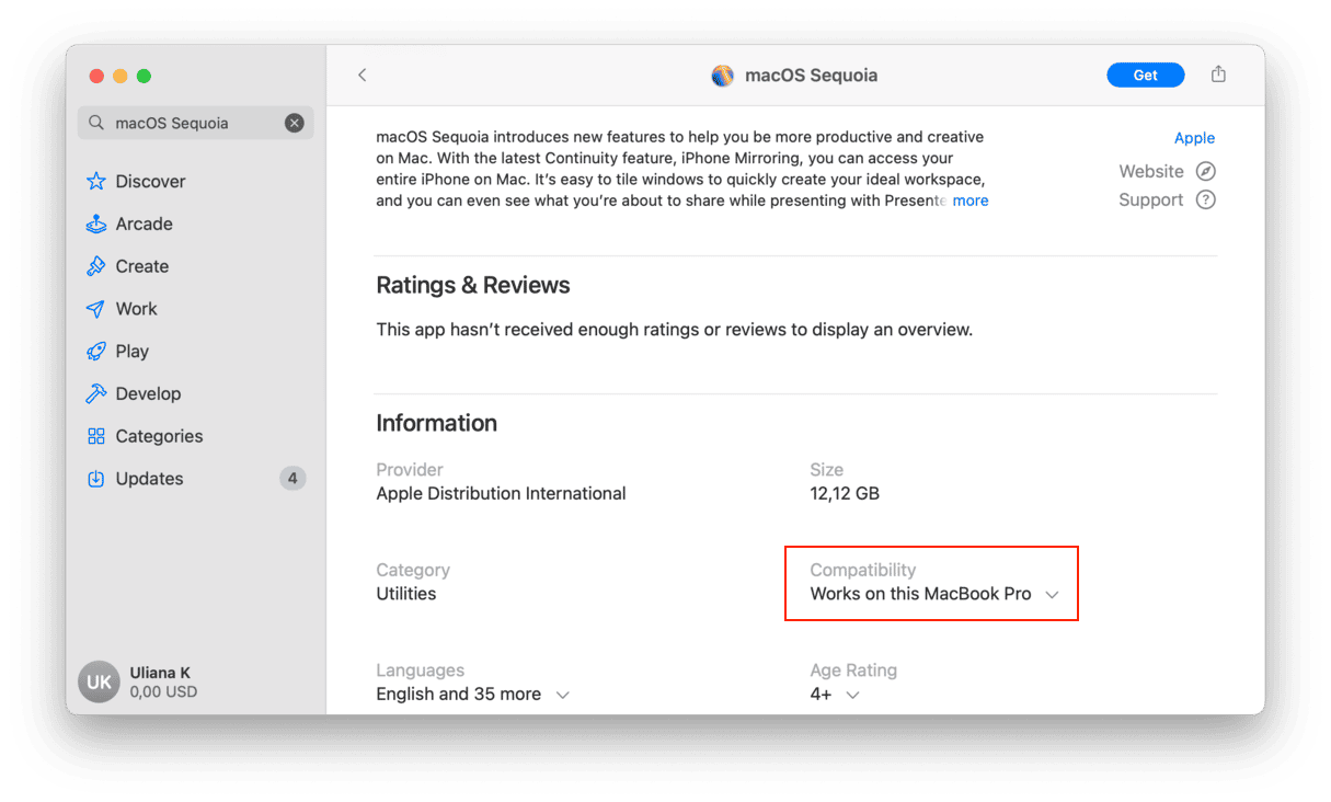 Det er den allerførste ting at prøve. Den bedste måde at gøre det på er at åbne App Store-appen, søge efter den macOS-version, du prøver at installere, og rulle ned i Kompatibilitetssektionen. Du bør se en meddelelse, der siger, "fungerer på denne Mac." Alternativt kan du gå til Apples webstedssupportsider og søge efter minimumssystemkravene. Du skal muligvis genstarte i sikker tilstand (se nedenfor) for at kontrollere, fordi hvis du udfører en normal genstart, kan din Mac straks genstarte installationsprogrammet.