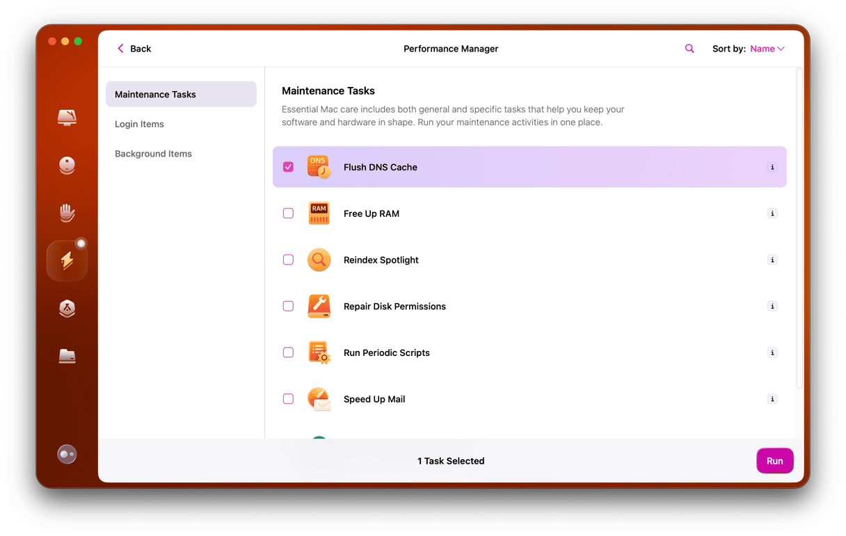 Ydeevnescanning i CleanMyMac hjælper med at reparere disktilladelser og køre vedligeholdelsesopgaver, mens du tømmer din DNS-cache på samme tid. Appen er også udstyret med en praktisk Uninstaller, som giver dig mulighed for at vælge og afinstallere eventuelle problematiske applikationer.