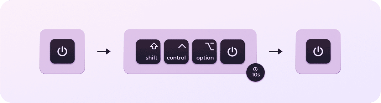 - Tryk og hold Shift+Control+Option på dit tastatur sammen med tænd/sluk-knappen i 10 sekunder.