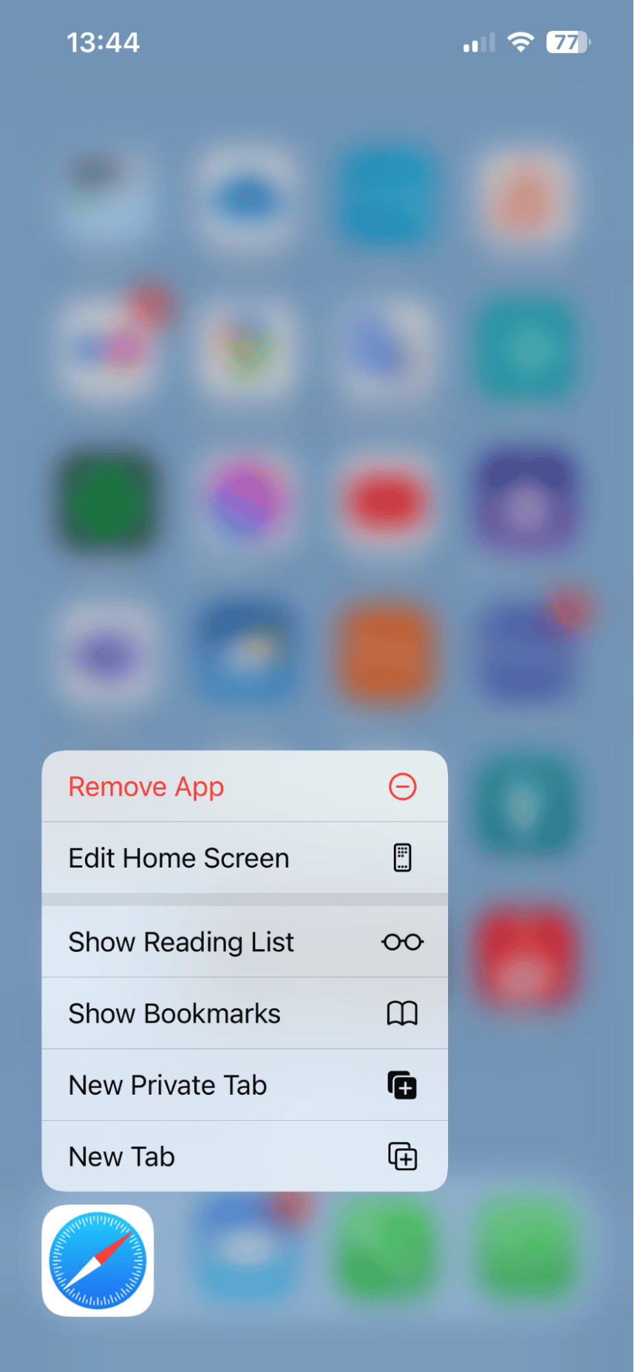 - Tryk og hold på Safari-ikonet.