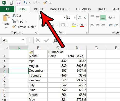 Trin 3: Klik påIndsætfanen øverst i vinduet.