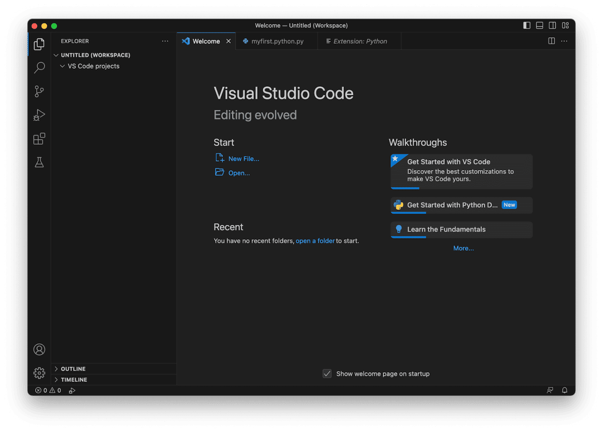 Før du kan bruge VS Code til at skrive Python, skal du oprette et script og installere en Python-udvidelse. Sådan gør du det: