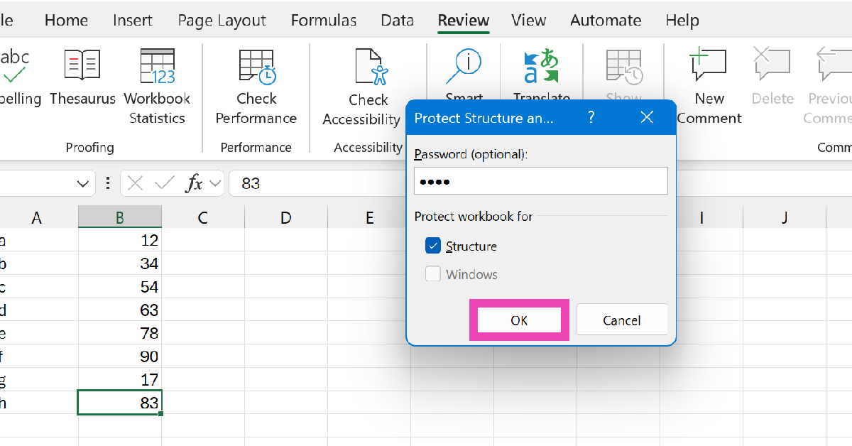 Adgangskodebeskytte strukturen af et regneark i Microsoft Excel