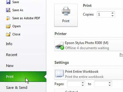 Trin 5: KlikTrykkei kolonnen i venstre side af vinduet, og klik derefter påTrykkeknappen øverst i vinduet.