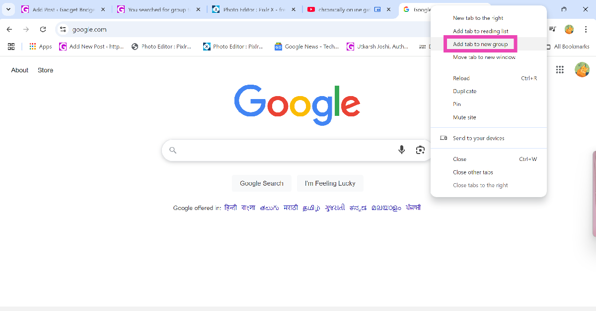 Trin 3:Vælg en anden fane ogdråbedet i gruppen. Alternativthøjreklikdet, gå tilTilføj fane til gruppe, og vælgnavnaf gruppen.