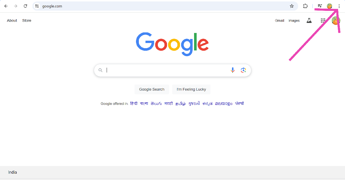 Trin 1: StartGoogle Chrome og tryk påellipseri øverste højre hjørne af skærmen.