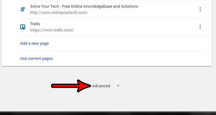 Trin 4: Rul til bunden af menuen, og klik påFremskredenvalgmulighed.