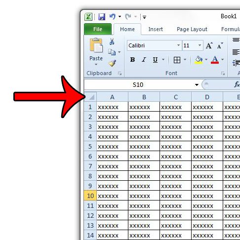 Hvis du stadig ser linjer på dit regneark efter at have foretaget denne ændring, så kan du faktisk have anvendt rammer på dit regneark, i modsætning til gitterlinjer. For at fjerne kanterne skal du klikke på knappen i øverste venstre hjørne af regnearket for at vælge alle dine celler,