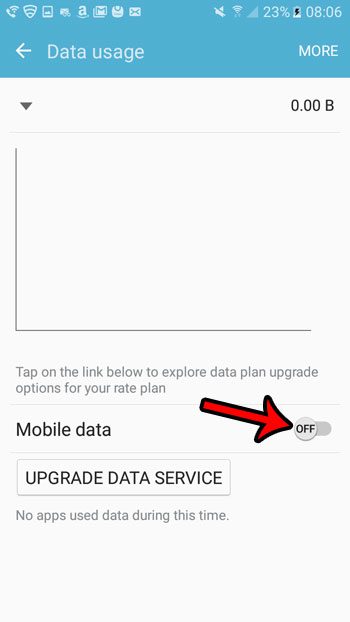 Hvis du gerne vil slå alt dit dataforbrug fra, så du slet ikke bruger det, så kan du slå mobildata fra på enheden ved at gå tilApps > Indstillinger > Databrug >og slukMobil data.