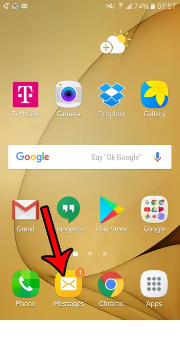 Trinnene i denne artikel blev udført på en Samsung Galaxy On5 i Android Marshmallow. Denne vejledning antager, at du i øjeblikket anmoder om leveringsrapporter for tekstbeskeder, som du sender, og at du gerne vil have, at denne adfærd stopper.