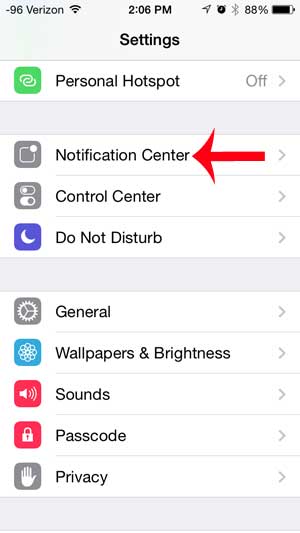 Trin 2: Rul ned og tryk påNotifikationscentervalgmulighed.