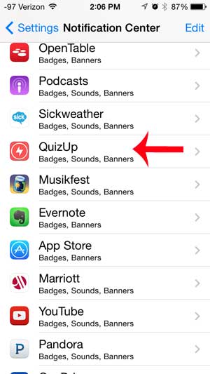 Sådan deaktiveres QuizUp iPhone Alerts (guide med billeder)