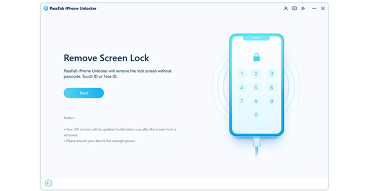 Besøg webstedet Passfab iPhone Unlocker og download programmet. Installer det først, og kør det derefter igen. Vælg nu "Start" fra menuen på hovedskærmen.Trin 2: